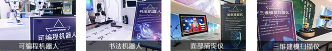 到校体验VR校园骑行、360全景效果体验、大数据识装系统、动作捕捉系统、可编程机器人、人工智能化妆系统、三维模型扫描仪