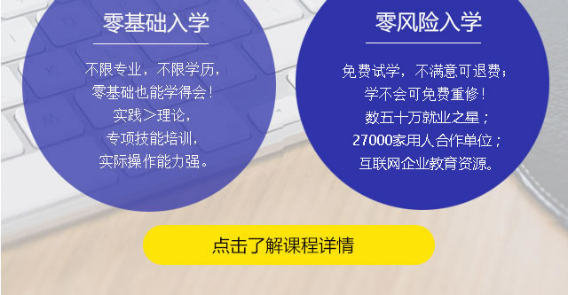 免费试学,不满意可退费;学不会可免费重修!零基础也能学得会!
